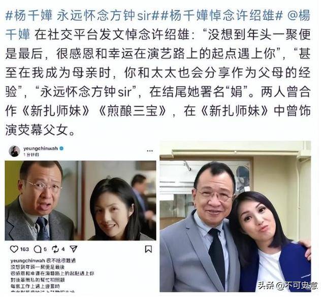 杨千嬅、惠英红、欧阳震华这些演员,也都发文怀念他,说他平时很照顾后辈,拍戏的时候也特别认真。