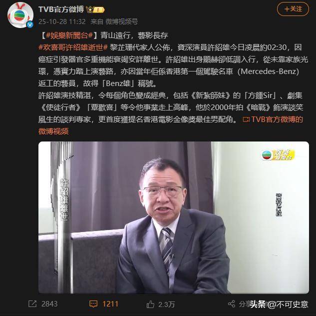 许绍雄在演艺圈的分量,从来不是靠名气堆出来的,虽然网上有冷言冷语,但更多的还是怀念。