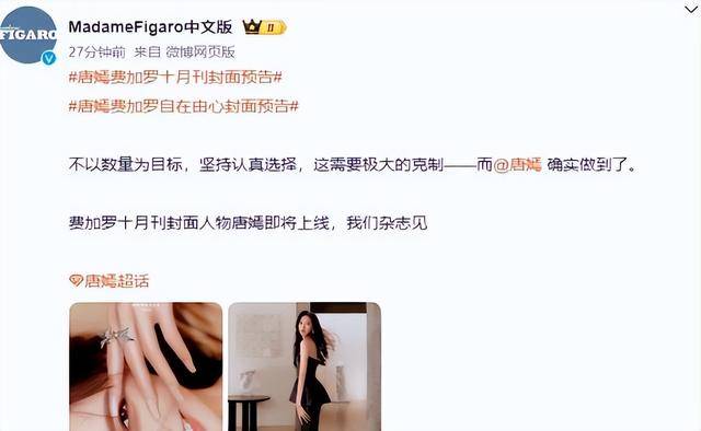 而且唐嫣10月刚官宣两个喜讯,一个是《时尚芭莎》11月刊封面,光预热话题就有3.6亿讨论量。