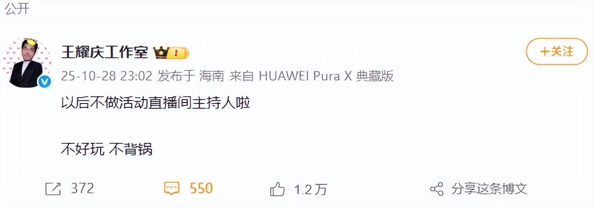 面对舆论的强烈反应,王耀庆的工作室在当天晚上11点发布了声明,表示他以后将不再担任活动直播的主持,并且称自己并没有恶意,只是觉得这个活动不好玩,自己不愿意为此背锅。这样的回应显然没有得到网友的理解,反而被认为是在推卸责任。网友们纷纷表示,这种言辞不仅没有缓解局势,反而让人感受到他对舆论的不满。