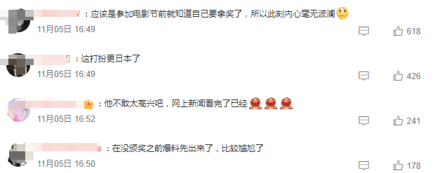 反正因为这个事儿,王传君也没少挨骂就是了。凡是报道、转发他拿影帝的新闻底下,都能看到不少人在刷“还能这么操作”、“预制影帝”、“资本关系户”、“沪圈耀祖”、“我不喜欢”……