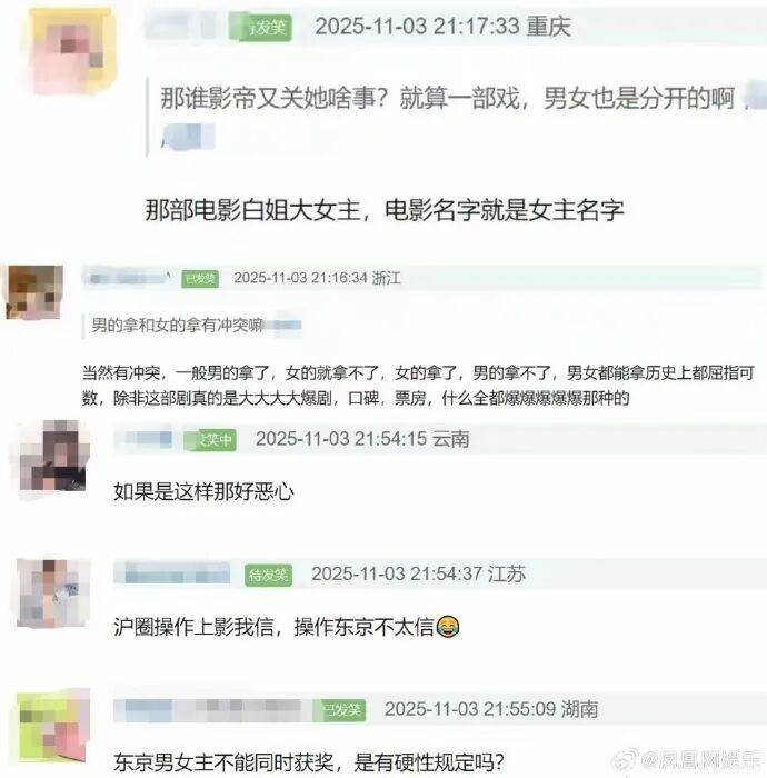因为白百何的微博发在正式颁奖之前,那两天网上各路爆料齐飞,有人言之凿凿将矛头指向王传君和文宴,但也有人表示不信,“奖还没颁呢,先别瞎猜”、“就算有黑幕,那还能管到东京去吗” 。