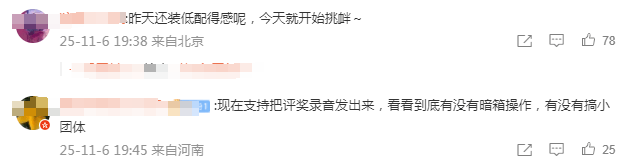没吃过瓜的人会觉得这话说得谦逊真诚,吃过瓜的人听感就比较复杂了。有人觉得他感谢这个感谢那个就是没感谢评委,怕不是在刻意避嫌,“怎么不感谢文晏”、“不感谢文晏说不过去吧”。