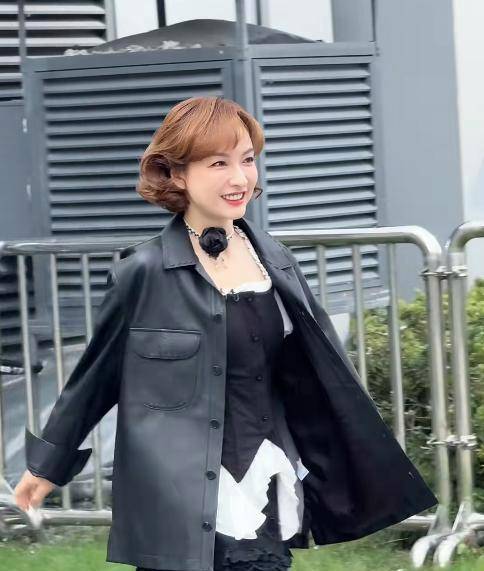 吴昕这次的造型中规中矩,一件黑色皮衣搭配同色系裙子,精致的卷发搭配小卡子减龄又少女。