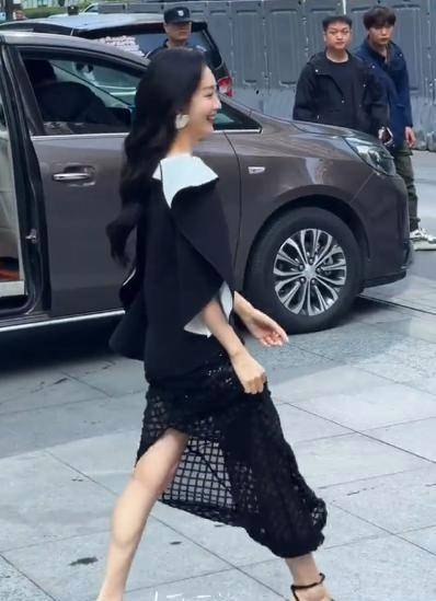 只见当天她一头慵懒黑色卷发低调又大气,搭配黑白拼接礼服既显身材又符合气质。