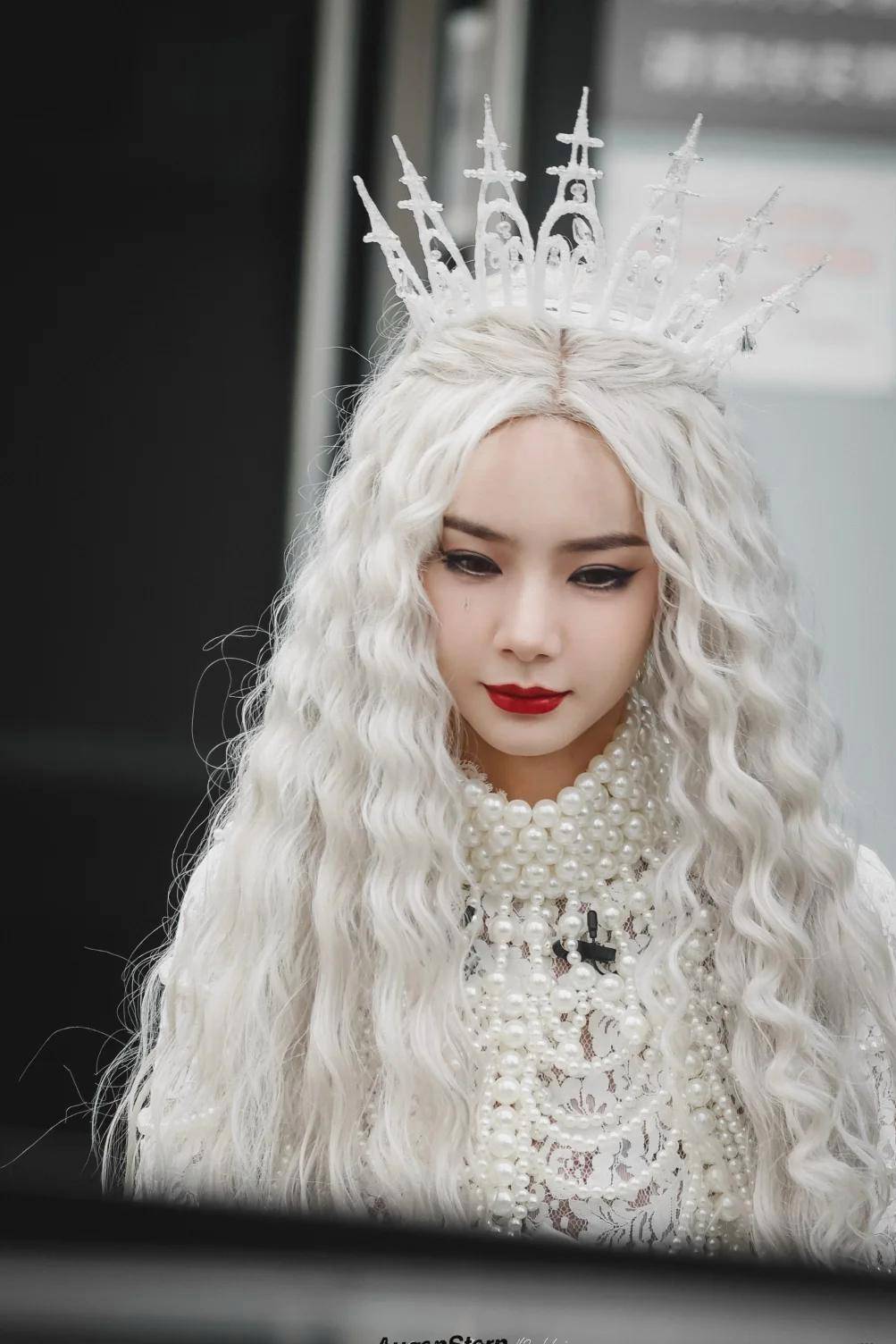 整了一个白发爱丽丝的造型,这一头看着就不有点劣质的假发和皇冠配在一起就很违和,白花花的妆容和烈焰红唇一出来。
