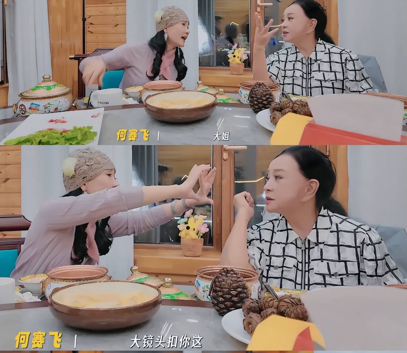而对于刘晓庆,何赛飞更是直言不讳。当刘晓庆谈到“年纪大了戏路受限”,何赛飞毫不留情地回应道:“大姐,镜头真怼到脸上时,那皱纹能不明显吗?”这一番话令刘晓庆愣住了,现场的气氛瞬间尴尬。即便是向来霸气的宁静,也在何赛飞面前显得有所收敛,似乎不敢与她正面冲突。