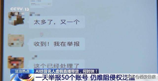 温峥嵘团队工作人员发现虚假视频在网络传播后,便持续进行举报,一天内曾集中举报50个假冒账号,有的造假账号被平台下架处理,有的则刚下架就换个形式重新出现,让人防不胜防。对于这样的情况,工作人员告诉记者,部分商家只需截取一段影像,用简易工具就能生成虚假内容,而他们取证却要花费很大的精力。