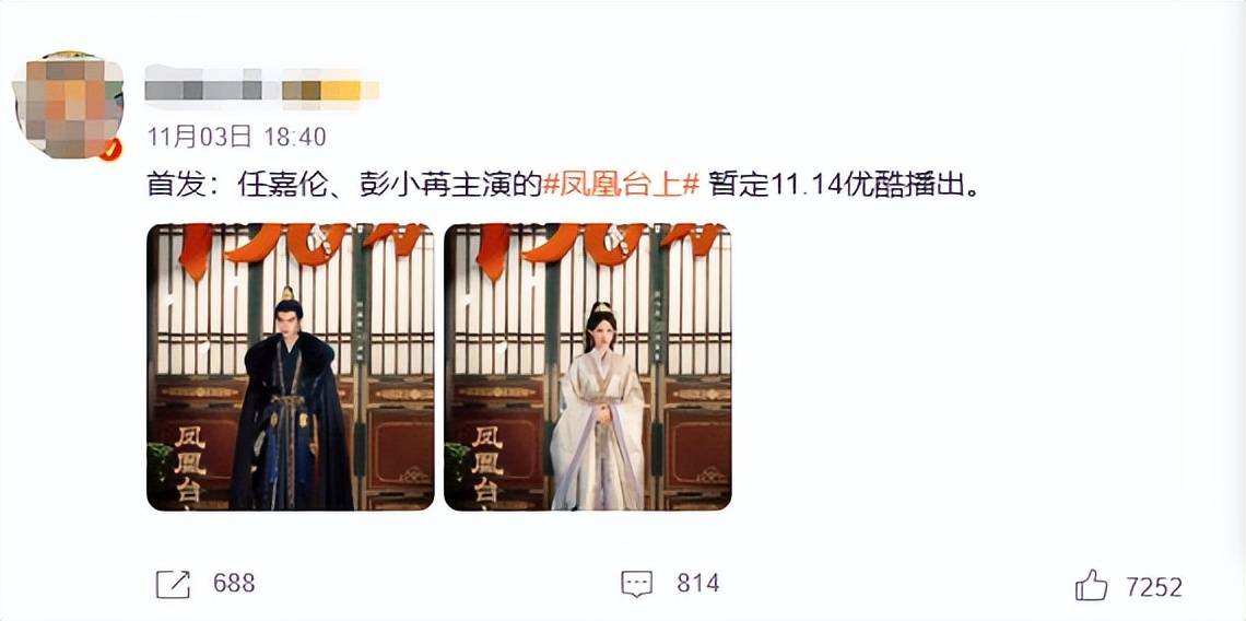 紧接着和任嘉伦合作的《凤凰台上》又定档11月中旬。