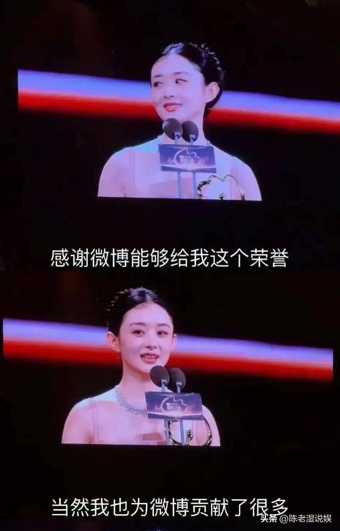 她在领奖的时候公开内涵说,自己为微博贡献了很多热度。
