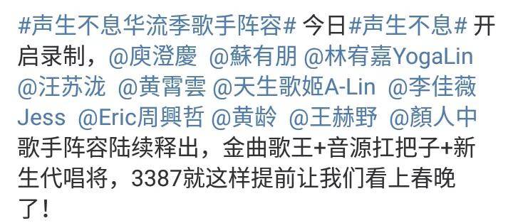 如此强大的歌手阵容,让《声生不息华流季》一经官宣便迅速登上热搜,网友们纷纷表示迫不及待想要看到这场音乐盛宴的到来。相信节目一经播出,会再次点燃观众的音乐热情,带来一波又一波的讨论和热议。
