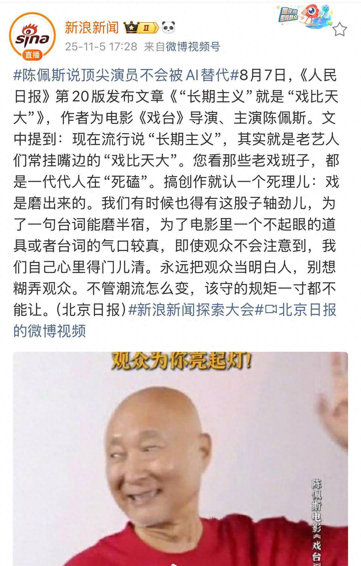 11月5号,有关演员和AI的讨论突然火了起来,陈佩斯一语点破:顶级演员,是没法被AI取代的。