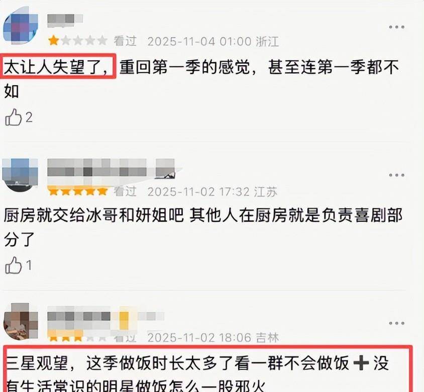 集体戴耳机的场景本应制造紧张感,却因成员间互动匮乏显得沉闷。观众犀利点评:“仿佛观看静态艺术展”,直指节目娱乐性与参与度的双重缺失。更有观点认为烹饪环节比重失衡,若不能平衡生活化与戏剧性,恐难再现昔日辉煌。