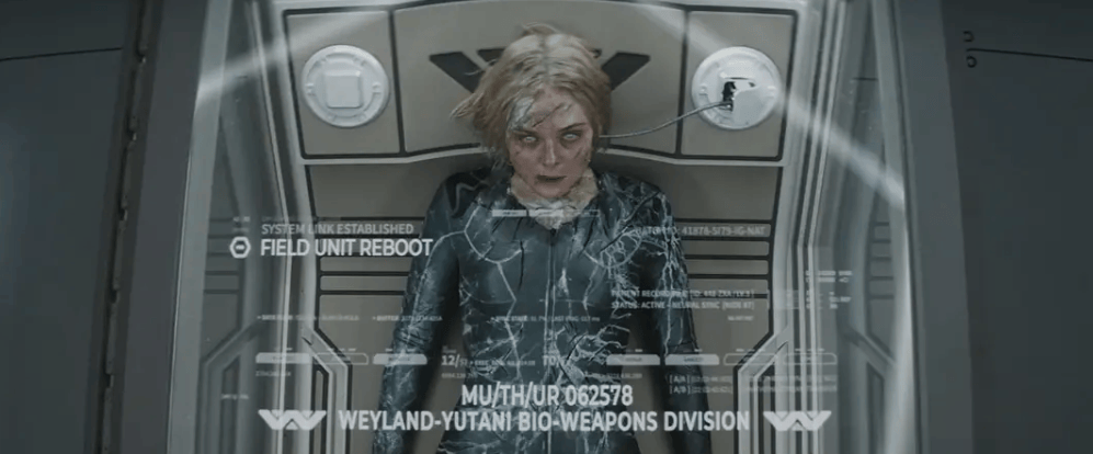 去年上映的《异形:夺命舰》里,生化人翻白眼时眼球里弹现的维兰德公司LOGO,与本片中女主一模一样,这也算是主创团队埋下的另一个伏笔吧。