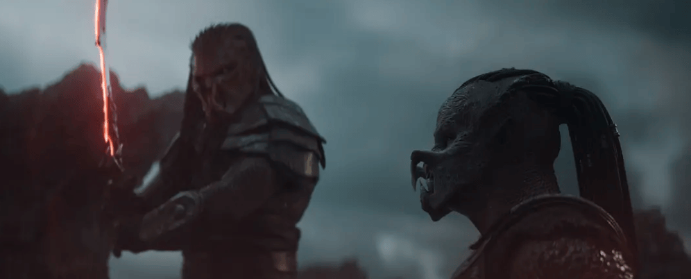影片开创了许多关于“铁血战士”的第一次,如第一次进食、第一次悲伤、第一次冷幽默对话等,眼神戏被放大,即便演员戴着面具也能让观众看到这一既定的反派生物有了与人类一样的感情起伏。