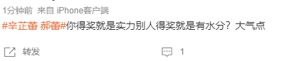 辛芷蕾也是个有事儿自己上的主,事情发酵没多久,她直接就用微博回应了。人家质疑她仅凭“扯头发”拿奖不合理,她就说“扯头发”那段只是整部作品和角色表达的一小部分,“看片段不如看全貌”。