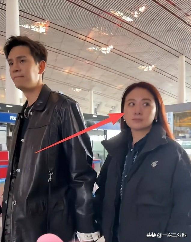 臃肿的羽绒服,让她的背影看起来都有些驼背,一身穿搭直接把年龄都暴露了,跟经超站在一起像母子。