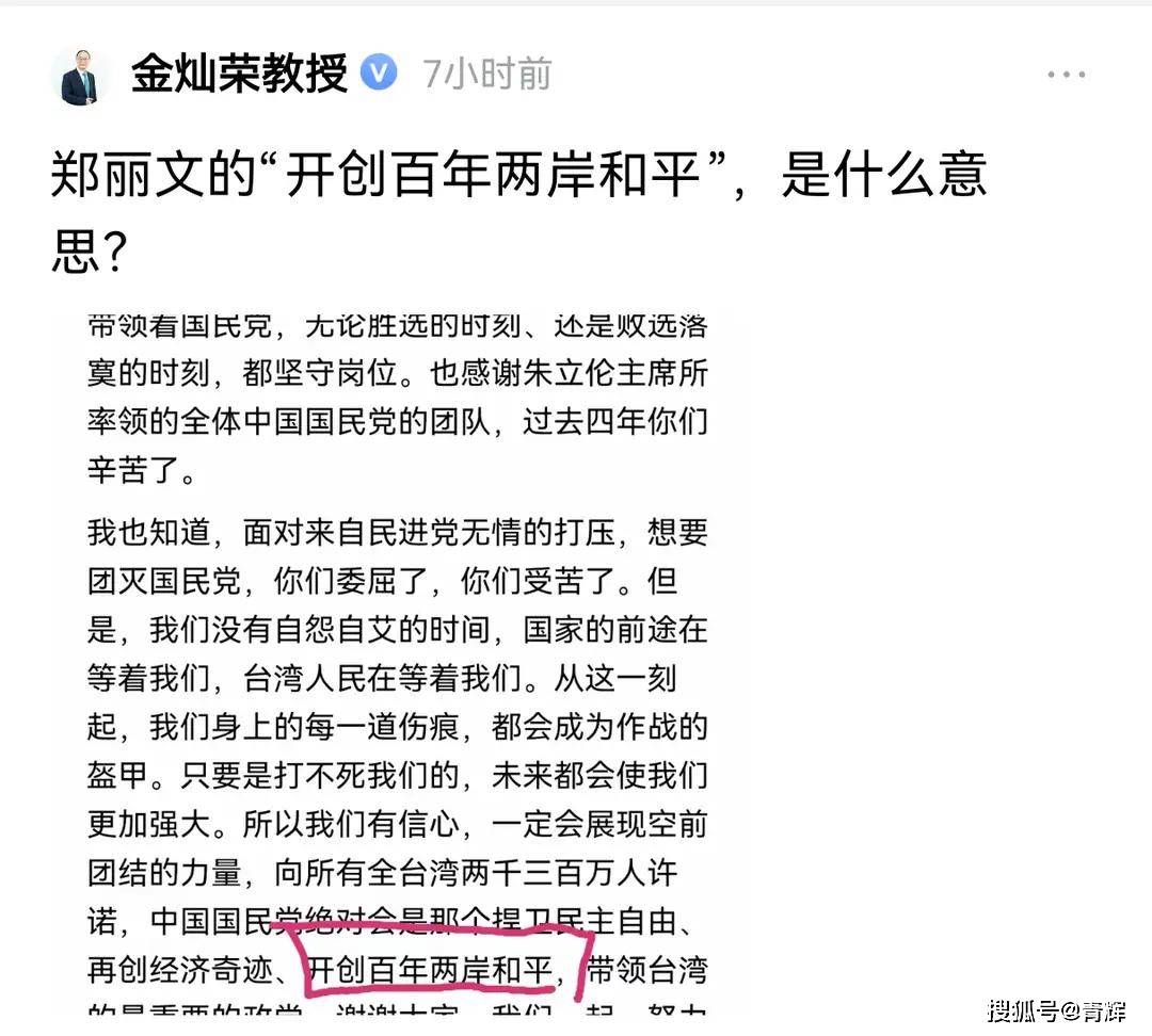 其实这已经不是金教授第1次质疑郑丽文的立场了,在这个问题上,我个人认为在当前很多媒体都热衷于把郑丽文当作统一女神的前提下,大陆对她应该是听其言而观其行。