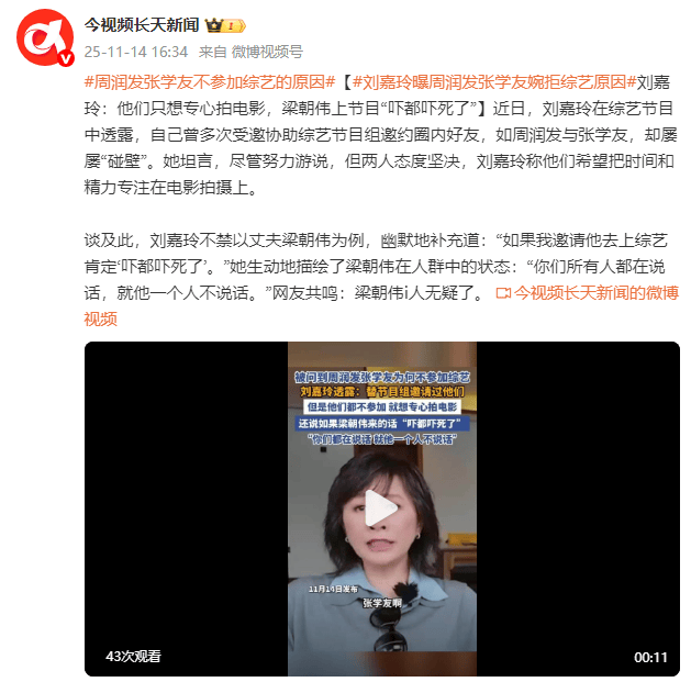 谈及此,刘嘉玲不禁以丈夫梁朝伟为例,幽默地补充道:“如果我邀请他去上综艺肯定‘吓都吓死了’。”她生动地描绘了梁朝伟在人群中的状态:“你们所有人都在说话,就他一个人不说话。”网友共鸣:梁朝伟i人无疑了。