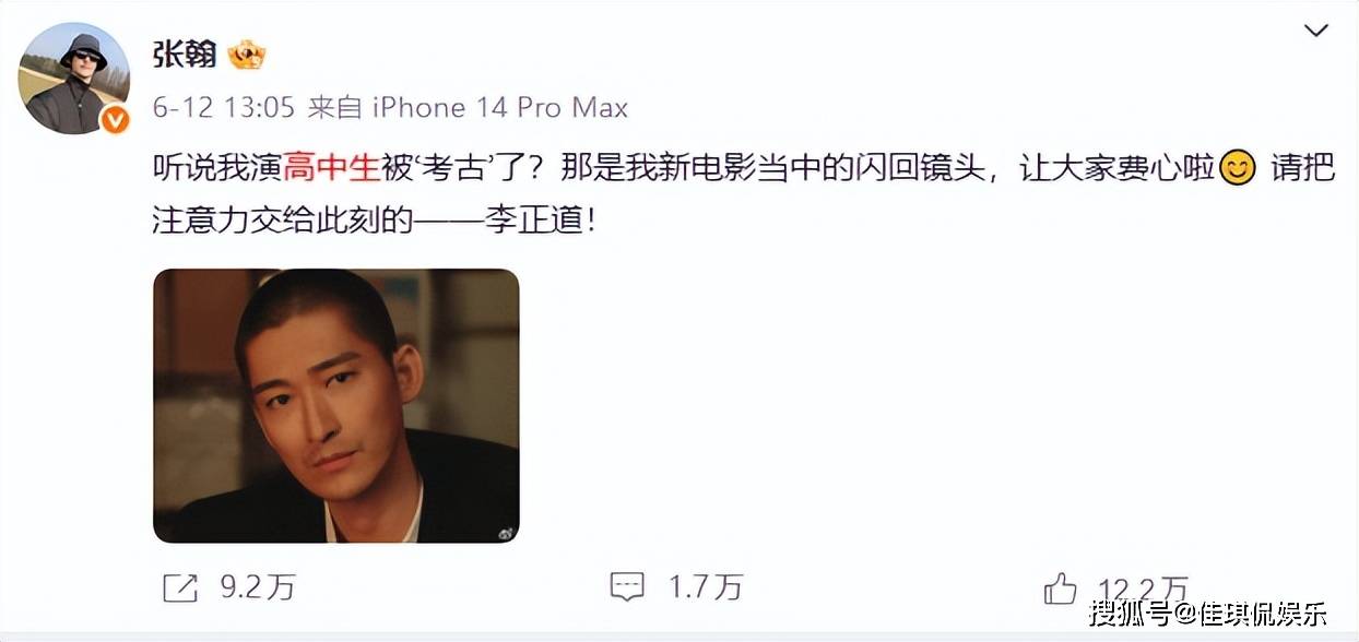 对此张翰回应称该造型仅为剧中闪回镜头,呼吁大家关注其主演的成年角色李正道。