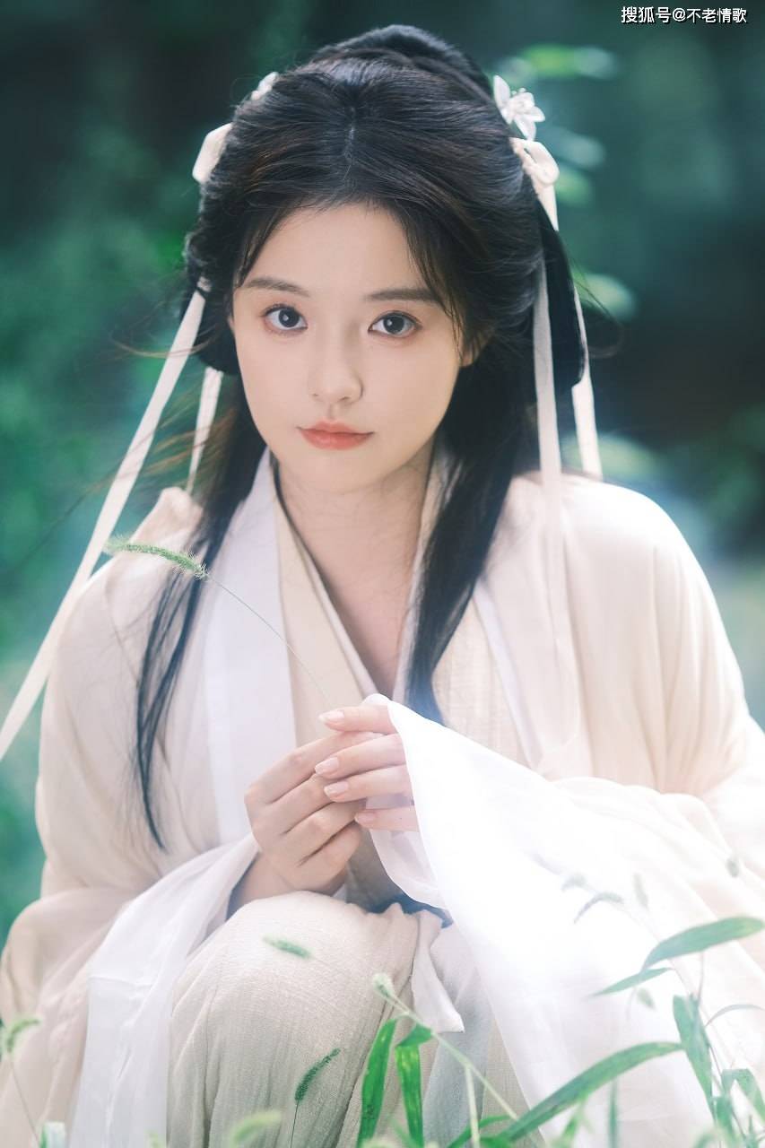 一位身着浅色古风服饰的女孩,她静静坐在柔和的自然光里,周围是一片淡绿色的草木。她的长发被细致地梳起,用白色丝带轻柔点缀,侧边还装饰着小巧的花朵,让整体气质更加清雅温柔。女孩手里轻轻捏着一根狗尾巴草,目光微微侧向一旁,像是在思索,又像是被某个细碎的念头轻轻牵住。她白皙的皮肤在光线下显得柔亮,神情静美,带着一点少女特有的恬淡与灵气。整体氛围如同一帧古风电影的定格画面,安静、清新、带着一丝不经意的诗意。
