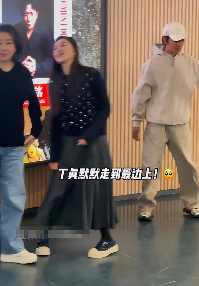 当主持人请主创上台合影时,站在C位的丁真突然侧身,把身边的江珊往中间推了半步。