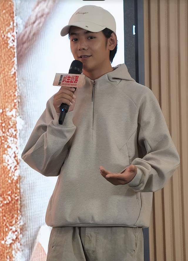 发布会现场丁真穿的很朴素,灰色卫衣搭配同色系休闲裤,还带着鸭舌帽,当天真是一点妆造都没做,完全素颜出镜。