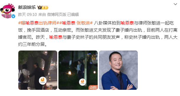 网友骂完男方骂女方,但这事儿还没完,第三轮反转隔天又来了。有狗仔拍到喻恩泰和律师张敏进一起吃饭、挽手回酒店,全程互动亲密。而张敏进的丈夫也发现了妻子婚内出轨,目前两人正在打离婚官司。