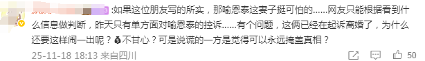 这谁能想到,第二天反转就来了。一位自称是喻恩泰和史林子共同好友的网友表示,是史林子不顾婚姻体面,颠倒黑白诬陷喻恩泰,他觉得史林子能干出这些事儿,就已经不配做他朋友了,他决定站出来公开真相。