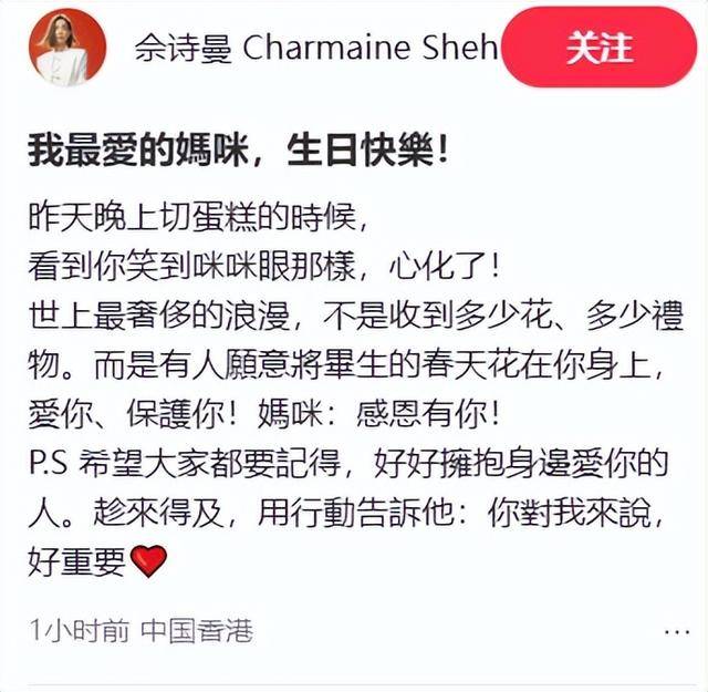 不过坚强的佘诗曼还是挺过来了,11月20日晒出了给母亲的庆生照,还特意在文章中写了一段深情“告白”: