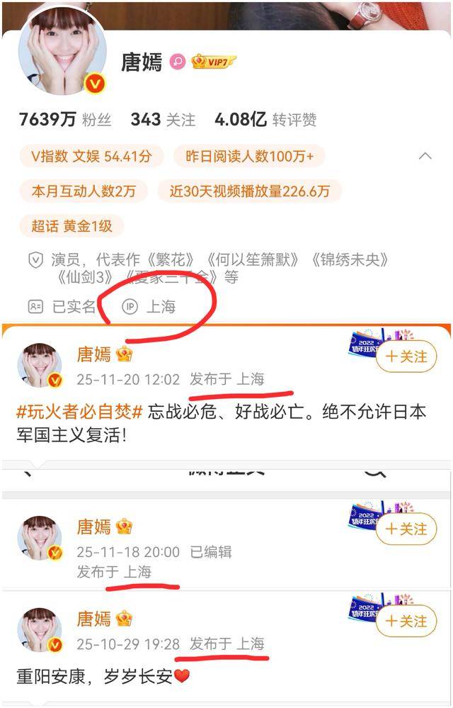 因为这段时间唐嫣社交账号的IP一直在上海,如果婚姻没问题的话,公公离世她是需要去北京的。