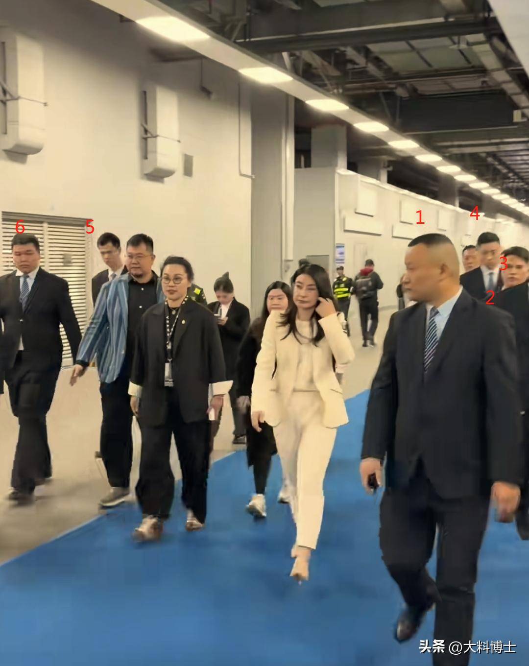 可能是为了安全起见,活动方为郭晶晶安排了6名安保人员,数名西装革履的大汉,把郭晶晶围在中间。