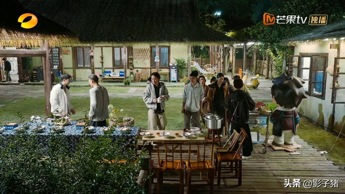 这一季《向往的生活》接近尾声,而蘑菇屋迎来了这一季嘉宾最多的一次聚会。一群戏剧人齐聚一堂,为收官大戏进行紧张排练。十几位嘉宾同场景作业,场面颇为壮观,其中既有曾来过的戏剧人,也有新面孔加入,比如获奖作品《游园失梦》的主创团队。屋内的桌子坐不下所有人,只能分两排安排用餐,餐桌也被加长以容纳大家。