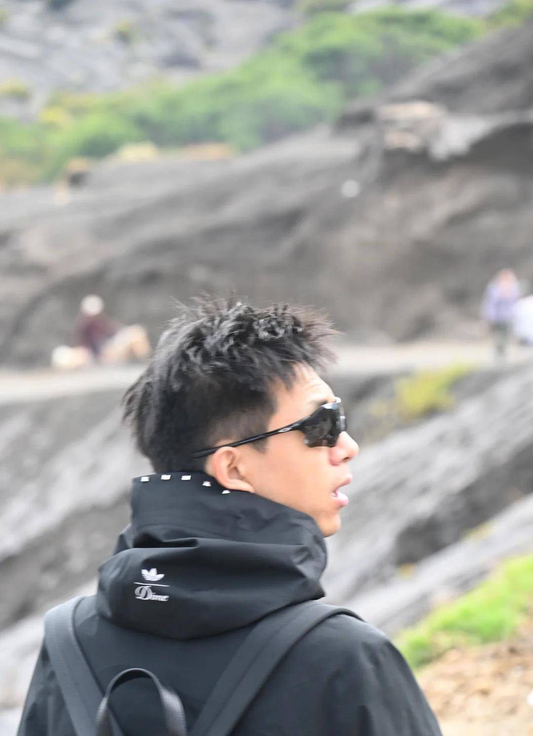 有个网友拍到他背着个大包,脸上满是火山灰,和一般的登山爱好者没啥差别,哪还有一点儿明星的样子?