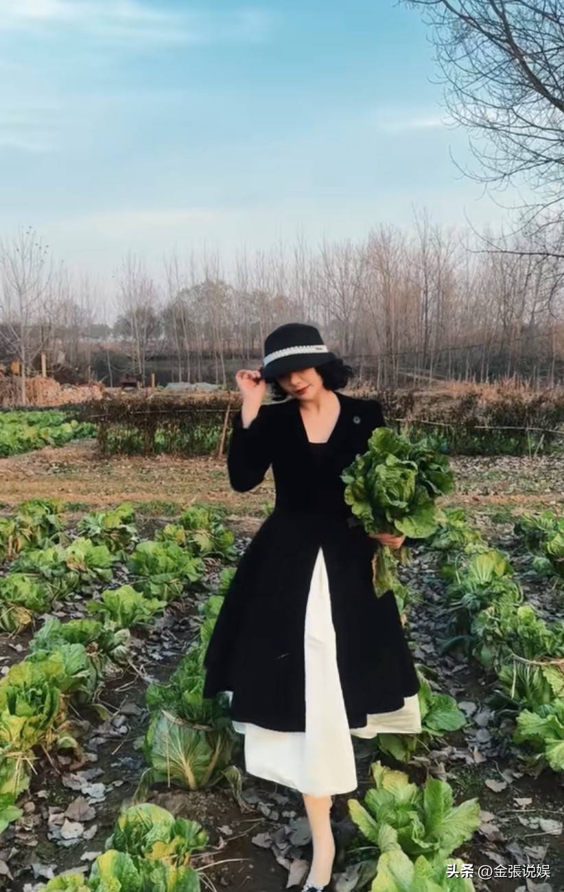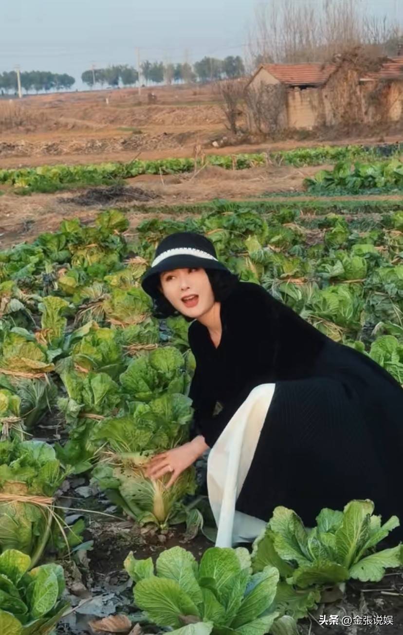 照片里她穿着高跟鞋在田里拔白菜,踩着泥土地还要保持裙装优雅,这画面怎么看怎么违和。