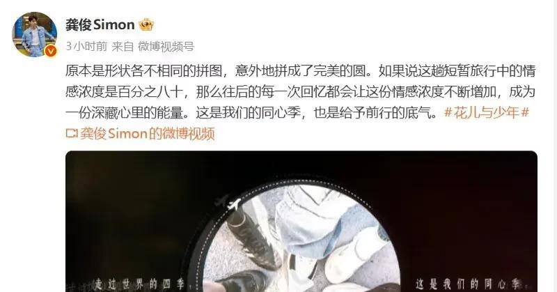 龚俊的告别方式别出心裁,将七人关系比作拼图游戏。原本散落的个体在旅途中神奇地拼合成完美圆形,这个浪漫比喻瞬间引爆粉丝评论区,被赞"年度最美团魂诠释"。