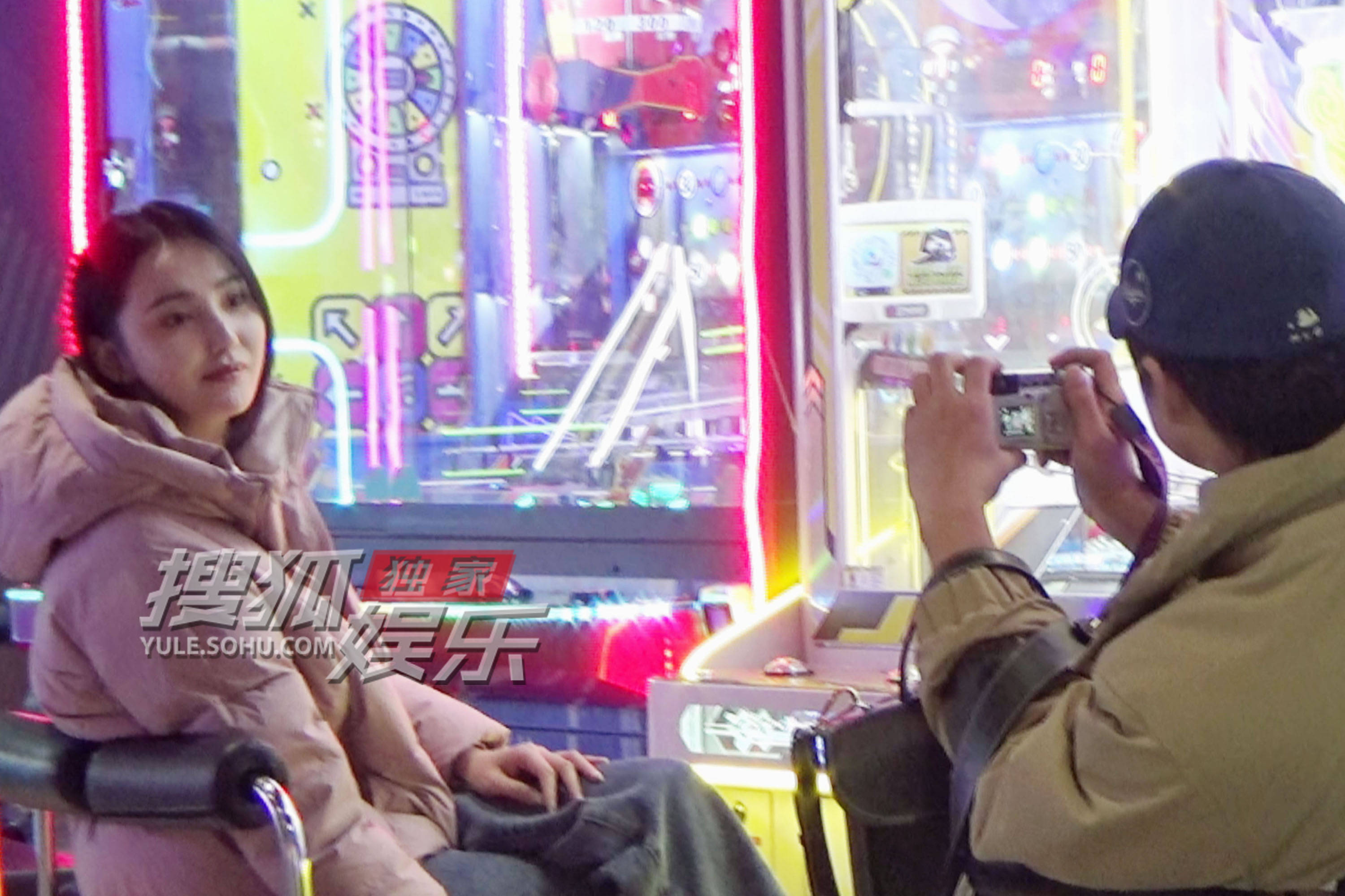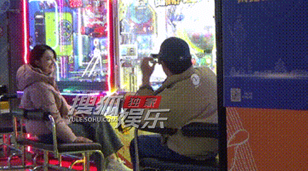 逛累了,两人坐在游戏机区休息,艾晓琪又开始对着镜头傻乐,章涛继续耐心拍照。