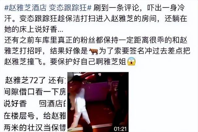 随着该粉丝的分享,瞬间引爆微博,很多网民及赵雅芝的粉丝,都非常气愤。除了大骂该粉丝是变态后,也控诉该酒店的管理存在很大的漏洞。