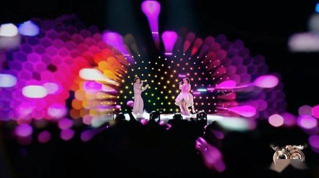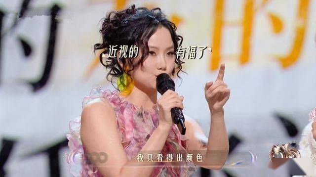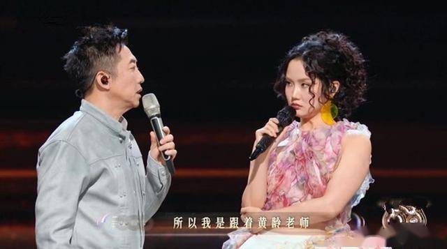 不仅选了这首要一气呵成的歌,还在中间部分“黑的白的红的黄的,紫的绿的蓝的灰的,你的我的他的她的,大的小的圆的扁的……”来个对唱,跟黄龄一人两个字轮流唱。这就导致难度上升了一截,除了功底好还要配合默契,两人在对唱这一段时怕忘词,都一直死盯着提词器呢。
