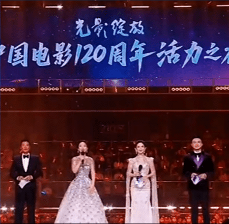 作为长期活跃在综艺舞台的主持人,她的综艺惯性在庄重的官方晚会上也显得有些不合时宜:蓝羽沉稳介绍电影发展史时,她会不自觉点头附和,偶尔露出略带僵硬的笑容;