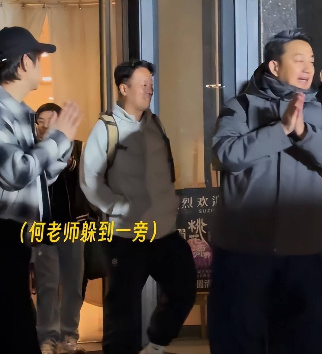 前段时间,有人拍到他和黄磊等好友一起排练话剧。照片里的何炅,穿着单薄的卫衣和阔腿裤,和穿着厚外套的黄磊形成鲜明对比。