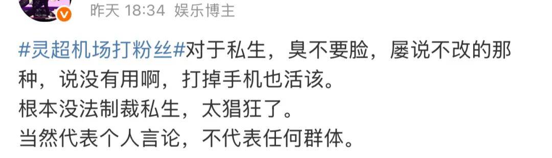 加上灵超在应对私生时,本就多次展现过颇为“刚硬”甚至“鲁莽”的一面,比如在机场直接爆发,一把薅过私生的手机丢在地上;