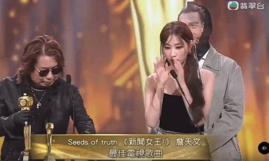 现年19岁的歌手詹天文(Windy)凭《新闻女王 2》插曲《Seeds of Truth》,在《万千星辉颁奖典礼 2025》中获得 “最佳电视歌曲” 奖,乐坛前辈林敏骢为其颁奖。