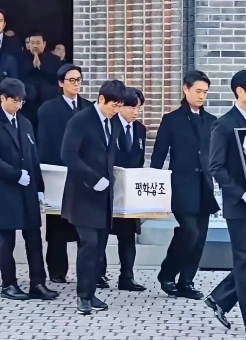 因丧尸剧《王国》中年再度走红的朱智勋,以及韩版《纸钞屋》的主演刘智泰等实力派,在前辈安圣基的遗像前深深鞠躬,最后参与抬棺。