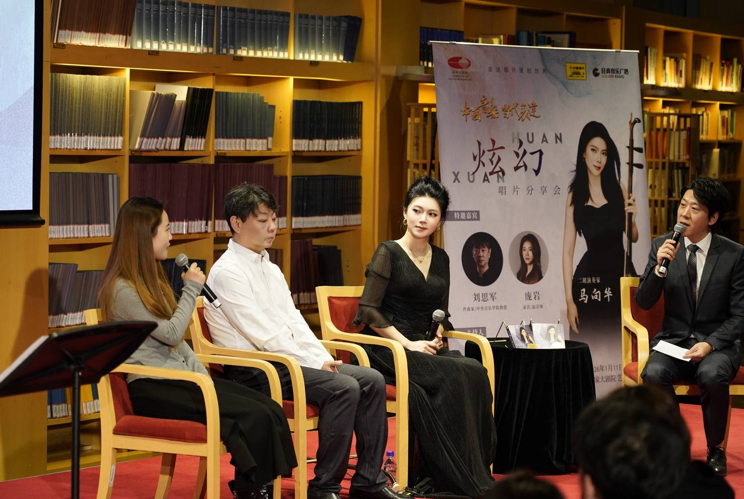 当千年二胡遇上电子音乐,一场跨越时空的听觉盛宴就此开启。1月11日,《炫・幻——马向华二胡原创作品演奏辑》唱片分享会亮相国家大剧院。活动开场播放了专辑开篇曲《炫》的音乐MV,悠扬的二胡旋律搭配富有视觉冲击力的画面,仿佛将现场观众牵引至古丝绸之路,开启一场跨越千年的古今音乐对话随后。二胡演奏家马向华、作曲家刘思军、青年录音师/混音师庞岩齐聚现场,围绕创作灵感、录制幕后故事,以及民族音乐与电子乐融合的实践感悟展开对谈。