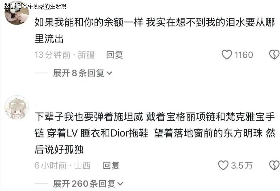 网友们都是人间清醒,孤独就是一种矫情,富得流油却伤春悲秋是一种凡尔赛。