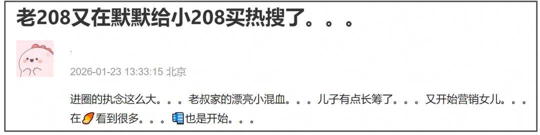 已经出道的“星二代”在抢占市场,还没出道的“星二代”也在铺路。很多明星的儿女都是热搜上的常客,比如刘烨的女儿霓娜、黄磊的女儿黄多多和陆毅的女儿贝儿等等。他们虽然尚未出道,但是网友们已经通过热搜见证了他们成长的每一步,这些热搜也为他们积累了话题度和关注度。