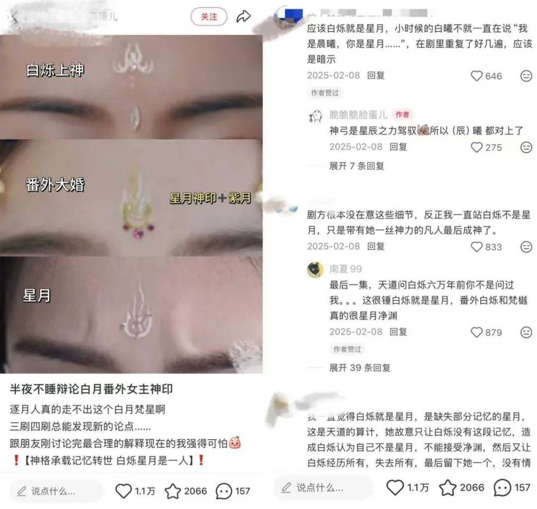 小红书上的年轻用户优先追寻代入感、新鲜感与共鸣点。因此,那些基于剧集内容本身、有梗有趣的深度讨论,往往能够反向为剧集开拓出新的讨论场。就比如有网友半夜抠细节,发起《白月梵星》番外角色设定讨论,引一众网友参与,辩到深处,甚至有路人直呼,“我觉得剧方根本没在意这些细节” “我们将立你为新的编剧”。