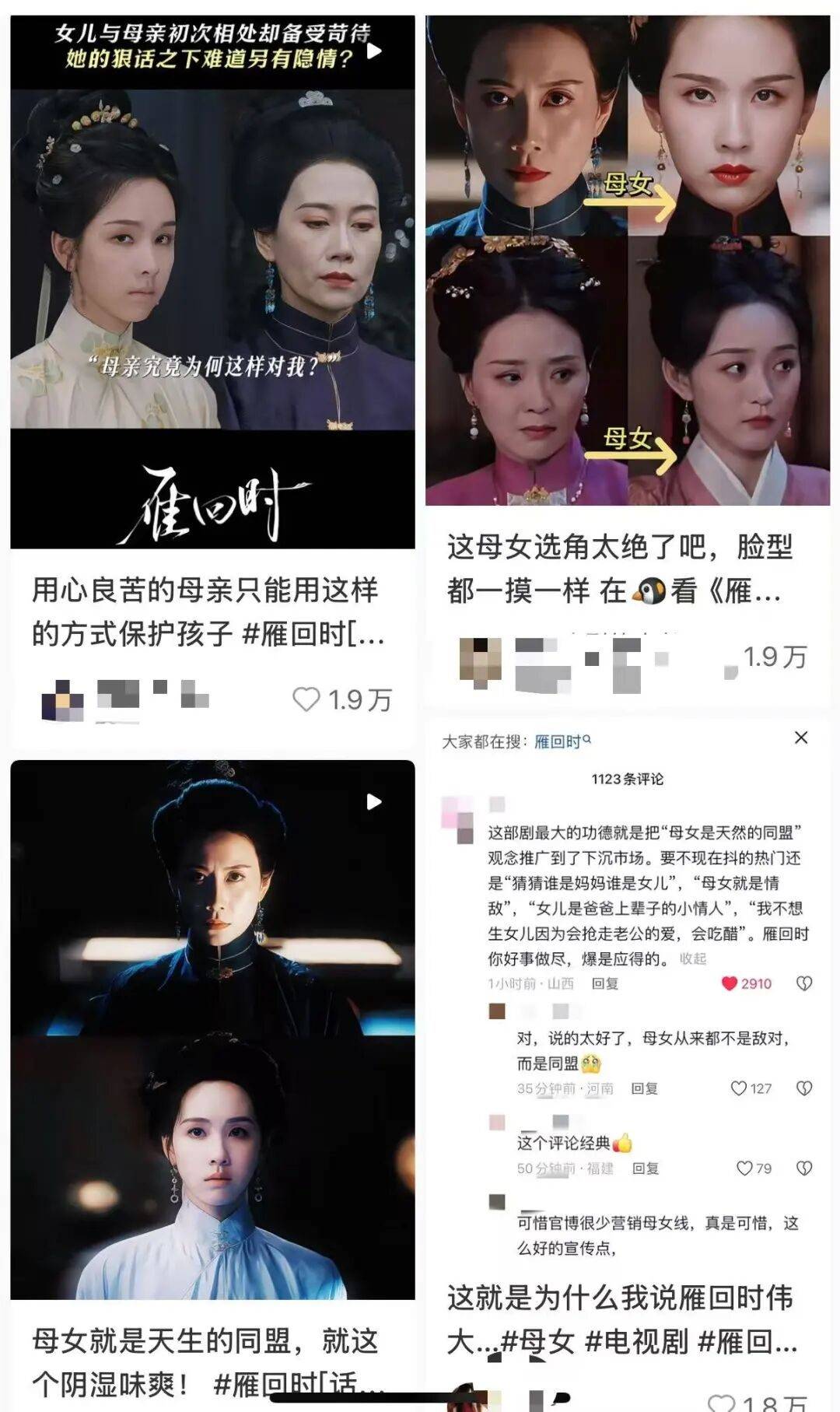 同时,社区也在放大作品的“观点生产力”。《雁回时》围绕母女线引发的强共情,促使大量用户带入自身经历产出细腻、先锋的解读,以至于时常有用户感叹:“小红书是雁回时的娘家”。