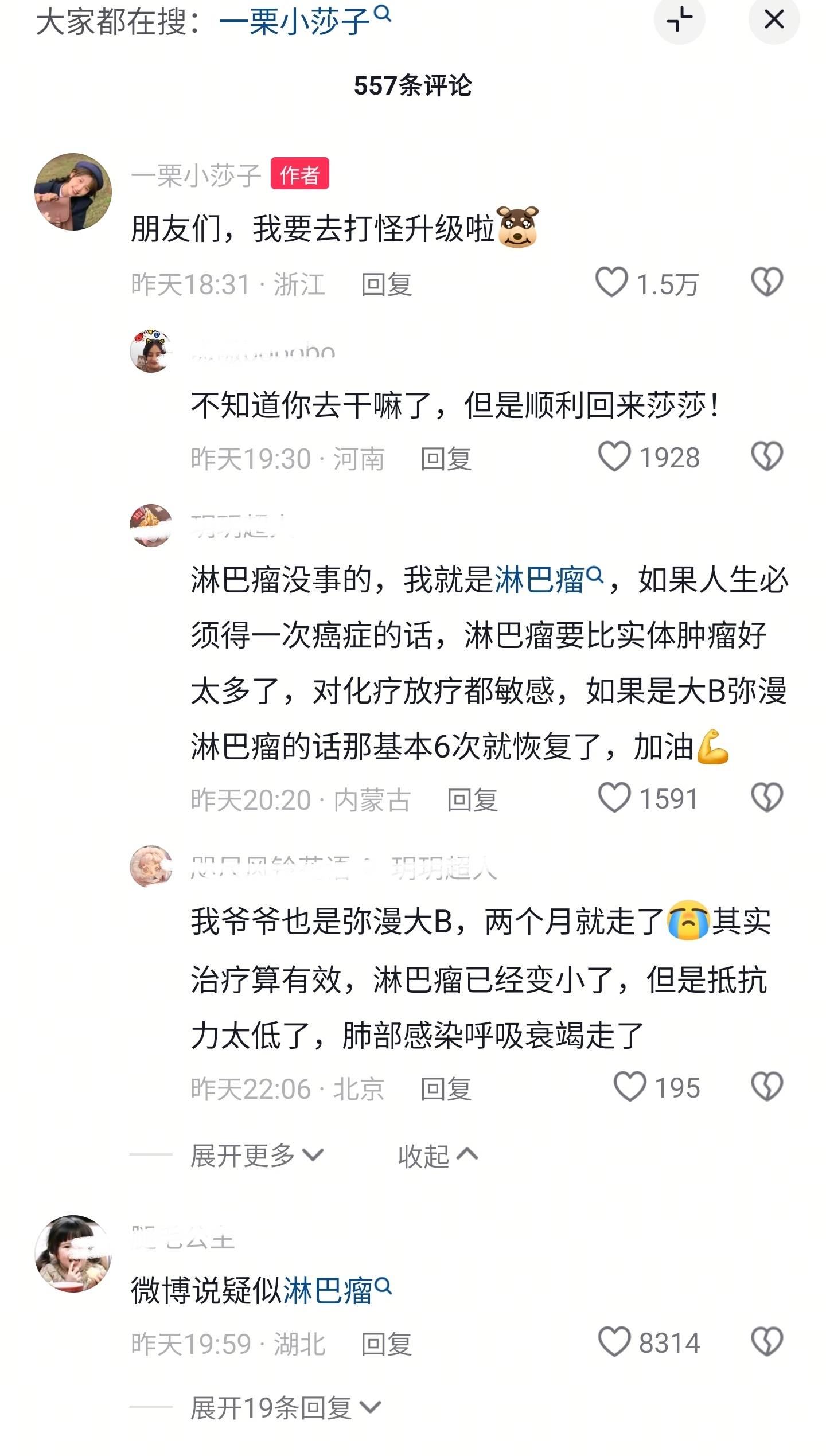 疑似淋巴癌,很多网友和粉丝看到后,纷纷劝慰她,只要好好化疗治疗就没事的,